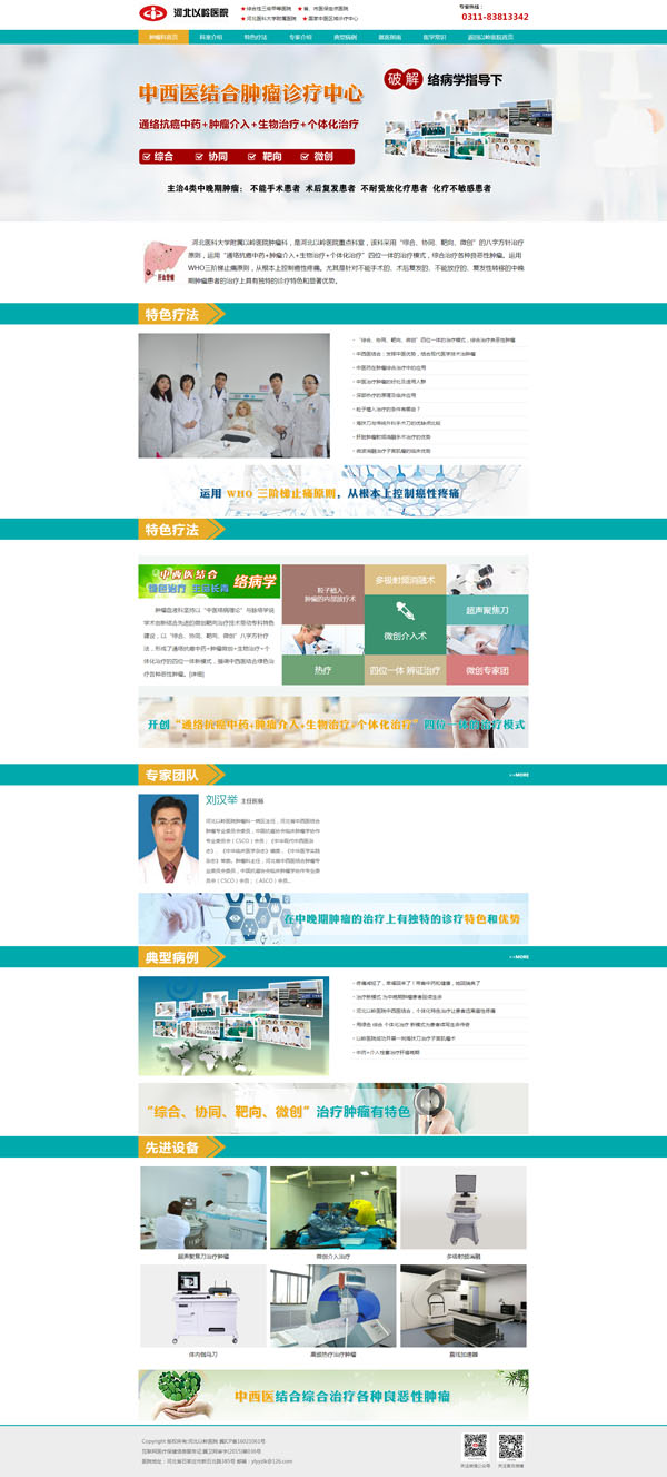 河北醫(yī)科大學(xué)附屬以嶺醫(yī)院腫瘤科,是河北以嶺醫(yī)院重點(diǎn)科室,該科采用“綜合、協(xié)同、靶向、微創(chuàng)”的八字方針治療原則,運(yùn)用“通絡(luò)抗癌中藥+腫瘤介入+生物治療+個(gè)體化治療”四位一體的治療模式,綜合治療各種良惡性腫瘤。運(yùn)用WHO三階梯止痛原則,從根本上控制癌性疼痛。尤其是針對(duì)不能手術(shù)的、術(shù)后復(fù)發(fā)的、不能放療的、復(fù)發(fā)性轉(zhuǎn)移的中晚期腫瘤患者的治療上具有獨(dú)特的診療特色和顯著優(yōu)勢(shì)。