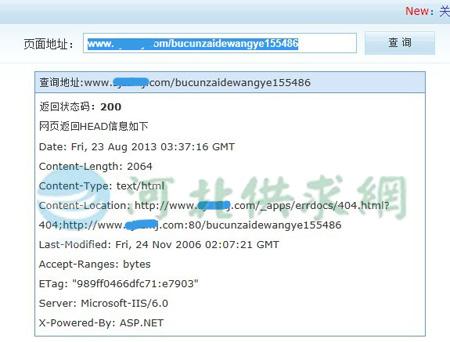 面對(duì)這樣情況,小編做了下面的兩個(gè)工作。第一是,制作了一個(gè)404.asp頁(yè)面上傳到服務(wù)器,結(jié)果返回的依然是200;第二,查詢了同一IP的其他網(wǎng)站的不存在的URL,結(jié)果同樣返回的是200。這個(gè)結(jié)果告知我的就是,404頁(yè)面返回200的原因是服務(wù)器問(wèn)題。