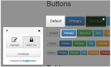 它的工作形式類(lèi)似于其他bug報(bào)告工具,BugMuncher添加一個(gè)按鈕反饋。在你的項(xiàng)目的頁(yè)面,單擊此按鈕顯示一個(gè)模態(tài)窗口有兩個(gè)工具:突出和黑色。