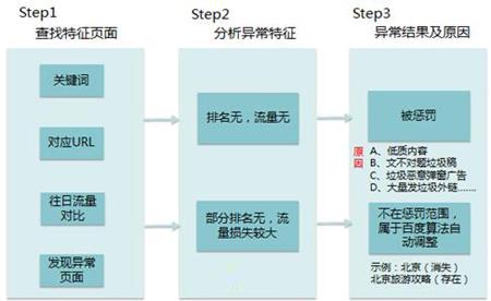 流程圖會(huì)按照三步來(lái)讓站點(diǎn)確認(rèn)到底是正常下跌還是異常下跌,在此站長(zhǎng)第一步首先要找到特征頁(yè)面