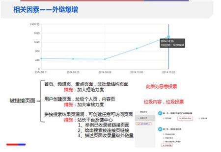 A、UGC站點(diǎn)尤其要關(guān)注這點(diǎn),之前談過(guò)要加大審核及處理力度,杜絕讓用戶創(chuàng)建垃圾內(nèi)容、個(gè)人頁(yè)面。不良分子為了排名的效果更好,會(huì)再對(duì)這些垃圾頁(yè)進(jìn)行投票。這里特別要提醒的是,如果站點(diǎn)審核力度及時(shí)就不會(huì)發(fā)生此類事情,只有站點(diǎn)內(nèi)容長(zhǎng)期處于無(wú)人管理的狀態(tài)時(shí)才會(huì)出現(xiàn)如此問(wèn)題。