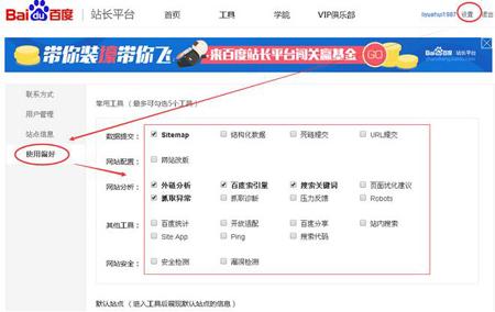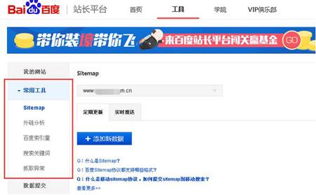 常用工具設(shè)置的初衷是好的,方便站長(zhǎng)們盡快找到最需要的工具。但是也會(huì)給新人們?cè)斐衫_,sitemap、外鏈分析等到底屬于哪個(gè)大類呢?是屬于信息提交還是數(shù)據(jù)分析呢。所以我建議新人們先不要使用這個(gè)常用工具,而是多觀察多使用!