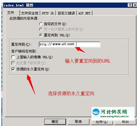 選擇重定向到URL,輸入要重定向到的URL,并勾選資源的永久重定向后點(diǎn)應(yīng)用。如下圖所示: