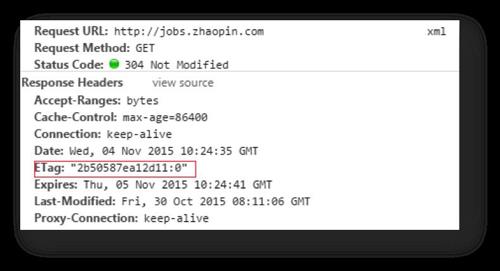 我們看到,ETag中包含了一連串的數(shù)據(jù),這就是計(jì)算出來(lái)的一個(gè)值,如果它發(fā)生變化,說(shuō)明其頁(yè)面內(nèi)容一定發(fā)生了變化。如果頁(yè)面沒(méi)有發(fā)生變化時(shí),頭信息應(yīng)該如下: