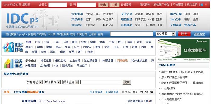 據(jù)國內(nèi)權(quán)威IDC評測門戶測評,河北供求網(wǎng)在全國IDC運營商網(wǎng)站建設(shè)排名中獲得第4名。